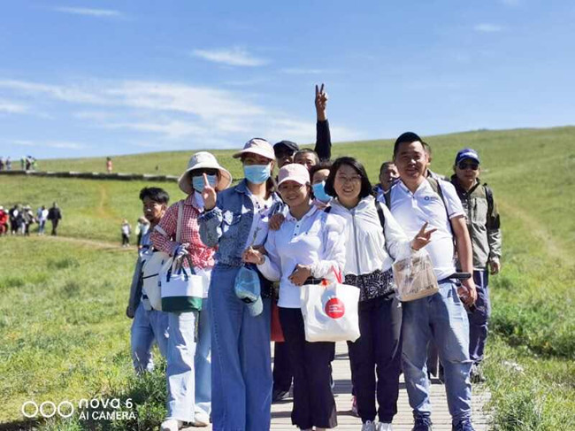 早晨7點鐘全體員工準時在公司樓下集合,前往輝騰錫勒草原黃花溝景區(qū),開始了一天的愉快旅程。