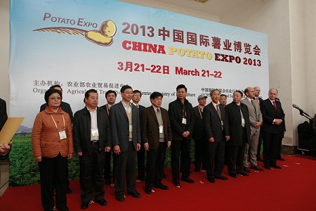 2013年3月21日上午10點,由農(nóng)業(yè)部農(nóng)業(yè)貿(mào)易促進中心主辦,中國作物學(xué)會馬鈴薯專業(yè)委員會、甘薯專業(yè)委員會,中國食品工業(yè)協(xié)會馬鈴薯食品專業(yè)委員,中國淀粉工業(yè)協(xié)會馬鈴薯淀粉專業(yè)委員會等單位協(xié)辦的第四屆中國國際薯業(yè)博覽會于在全國農(nóng)業(yè)展覽館盛大開幕。來自國家馬鈴薯亞太中心、糧農(nóng)組織北京代表處有關(guān)領(lǐng)導(dǎo),歐盟、荷蘭、老撾、埃及、泰國、孟加拉、阿塞拜疆、智利、印度尼西亞、烏克蘭、阿爾及利亞和尼日利亞駐華使館參贊、農(nóng)業(yè)官員,國內(nèi)薯類主產(chǎn)區(qū)行業(yè)管理部門領(lǐng)導(dǎo)以及海內(nèi)外薯業(yè)參展企業(yè)和采購商代表參加了開幕式。