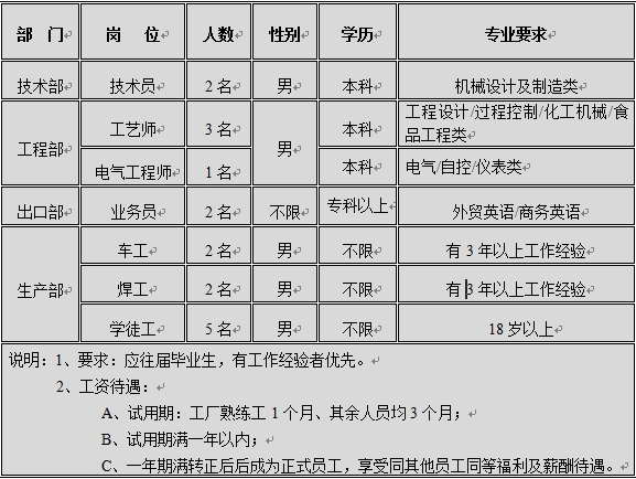 崗位要求及招聘名額